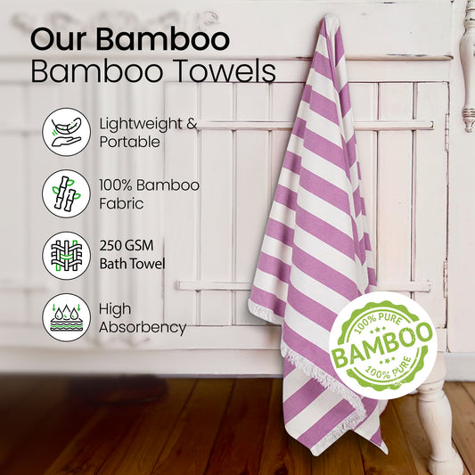 Bamboo Turkish Towel | 100% Bamboo |Ultra Soft, Absorbent & Quick Dry Towel for Bath, Beach, Pool, Travel, Spa and Yoga | 29 x 59 Inches (Purple Stripes)