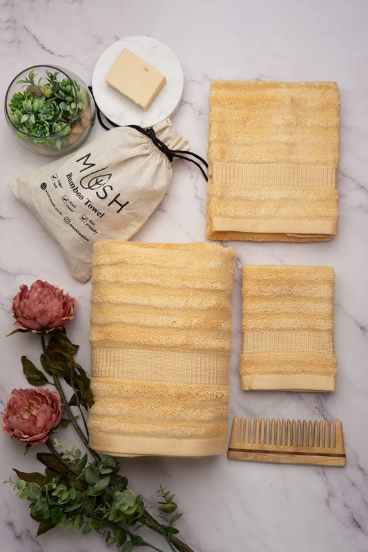 Bamboo Luxurious 3 PieceTowels Set | Ultra Soft, Absorbent and Antimicrobial 600 GSM (Bath Towel, Hand Towel and Face Towel) Perfect for Daily Use and Gifting (Khaki)