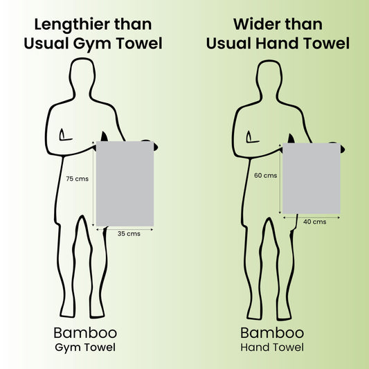 Bamboo Hand Towel Set of 2 | 100% Bamboo | Ultra Soft, Absorbent & Quick Dry Towel for Daily use. Gym, Pool, Travel, Sports and Yoga | 75 X 35 cms | 600 GSM (Cream & Green)