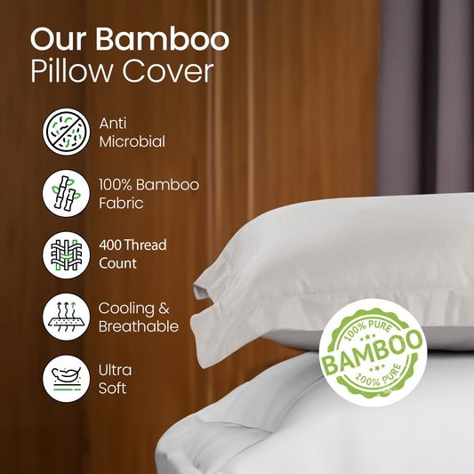 Bamboo Pillow Cover Set of 2 | 100% Bamboo Pillow Cover for Hair and Skin | Breathable, Silky Soft and Cooling Envelope Pillowcases for Hot Sleepers & Night Sweats | (Silver Mist, 17"x27")