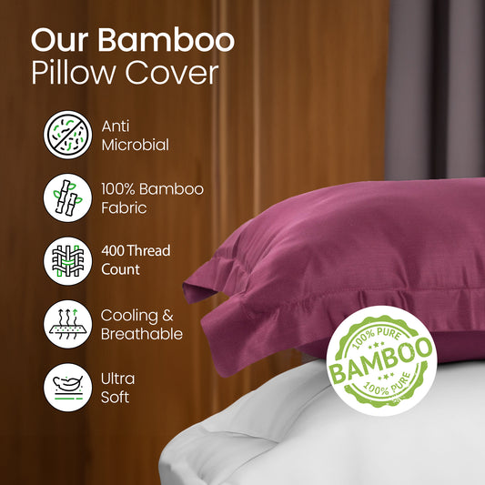 Bamboo Pillow Cover Set of 2 | 100% Bamboo Pillow Cover for Hair and Skin | Breathable, Silky Soft and Cooling Envelope Pillowcases for Hot Sleepers & Night Sweats | 17"x27" (Crimson Wine, King)