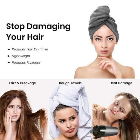 Bamboo Hair Towel Wrap | Absorbent Towel Hair-Drying | Hair Care Combo | Super Quick-Drying| Adjustable Buttons to Wrap Around Hair 500 GSM (Dark Grey)