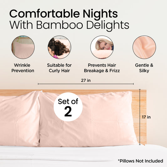 Bamboo Pillow Cover Set of 2: Cooling Pillowcases with Hair & Skin Benefits | 17"x27" | Peach