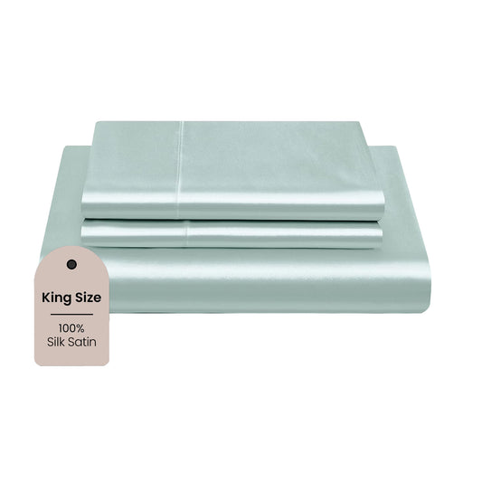 400TC Luxurious Satin Silk King Size Flat Sheet with 2 Pillow Covers - Silky Soft, Skin-Friendly, Breathable, Durable Premium Bedding | 108 X 108 Inches (Aqua Blue, King Flat)