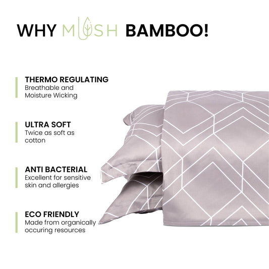 100% Bamboo Printed King Size Bed Sheet 108x108 inches | 300TC Bedsheet for Double bed | Ultra Soft, Naturally Anti Microbial & Cooling Double Bed Luxury Sheets | Pack of 1, Gentle Grey