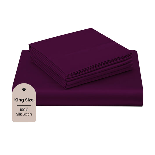 400TC Luxurious Satin Silk King Size Flat Sheet with 2 Pillow Covers - Silky Soft, Skin-Friendly, Breathable, Durable Premium Bedding | 108 X 108 Inches (Ruby Red, King Flat)