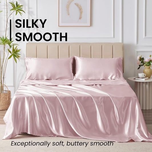 400TC Luxurious Satin Silk King Size Flat Sheet with 2 Pillow Covers - Silky Soft, Skin-Friendly, Breathable, Durable Premium Bedding | 108 X 108 Inches (Royal Beige, King Flat)