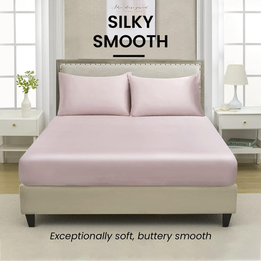 400TC Luxurious Satin Silk King Size Flat Sheet with 2 Pillow Covers - Silky Soft, Skin-Friendly, Breathable, Durable Premium Bedding | 108 X 108 Inches (Lavender, King Fitted)