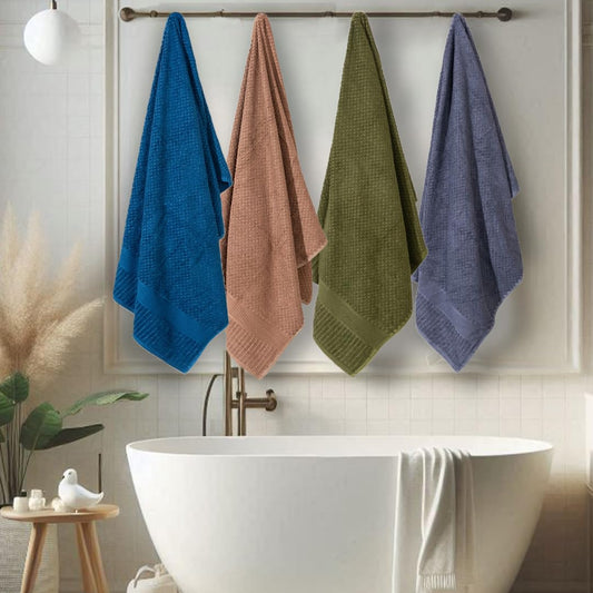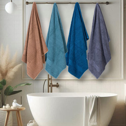 Hearth & Haven Bamboo Towels for Bath Large Size | 450 GSM Bamboo Bath Towel for Men & Women | Soft, Highly Absorbent & Quick Dry | Pack of 4, 70 X 140 cms (Assorted 4)