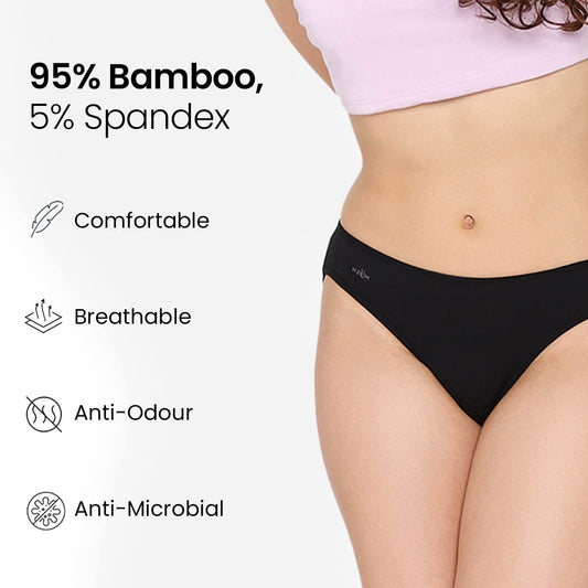 Womens Ultra Soft Bamboo Modal Bikini Brief || Breathable Panties || Anti-Odor, Seamless, Anti Microbial Innerwear Pack of 3 (S, Black)