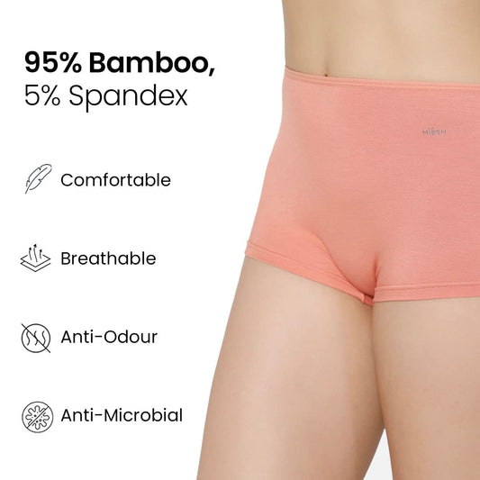Bamboo Boyshort Panties for Women | Ultra Soft Bamboo Underwear for Women | Breathable, Anti-Odor, Seamless & All Day Comfort Panties Pack of 3 (M, Peach)