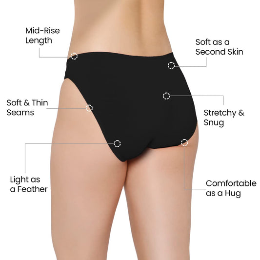 Womens Ultra Soft Bamboo Modal Bikini Brief || Breathable Panties || Anti-Odor, Seamless, Anti Microbial Innerwear (M, Black)