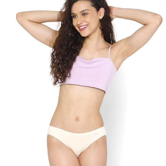 Womens Ultra Soft Bamboo Modal Bikini Brief || Breathable Panties || Anti-Odor, Seamless, Anti Microbial Innerwear (L, Beige)
